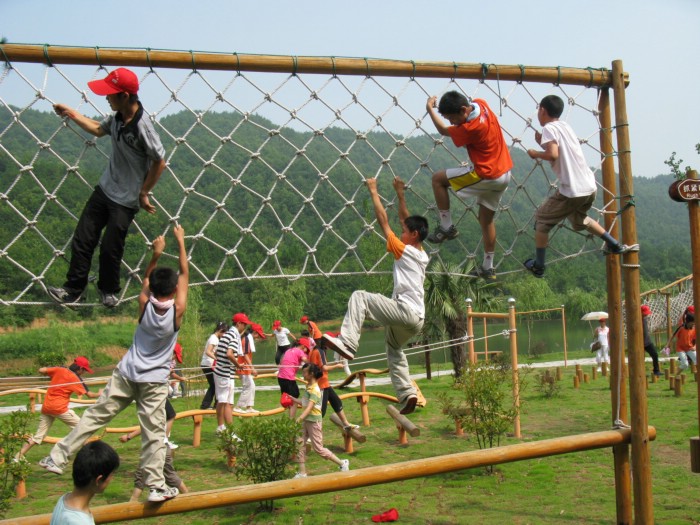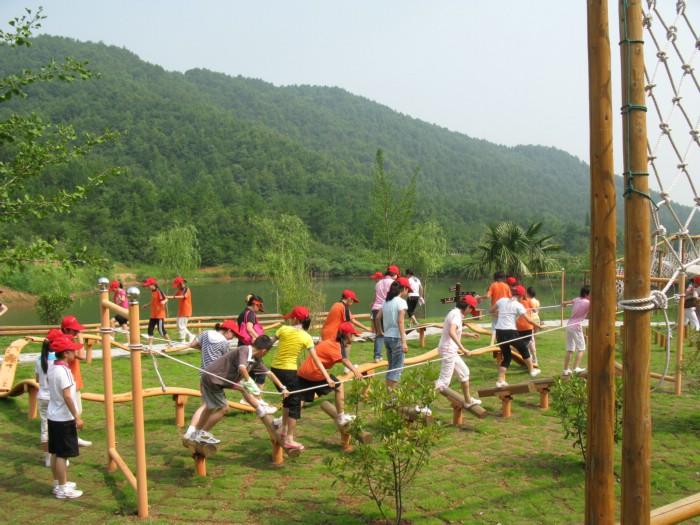按照既定計劃,這兩天是戶外體能拓展活動。我們選擇的地點是小龍山。兩天行程安排大致雷同:8:00前向每位營員發(fā)放礦泉水和橙汁以及中午吃的干糧,并發(fā)放統(tǒng)一制作的旅行帽;8:00發(fā)車,9:00左右到達(dá)目的地;先在山腳下體能拓展基地參加活動;10:00左右,開始上山,11:40左右到達(dá)服務(wù)區(qū),在此休息、進(jìn)餐、活動;1:20向主景區(qū)進(jìn)發(fā),2:00左右返回服務(wù)區(qū);2:20下山,3:00左右到達(dá)山腳下,乘車返回。