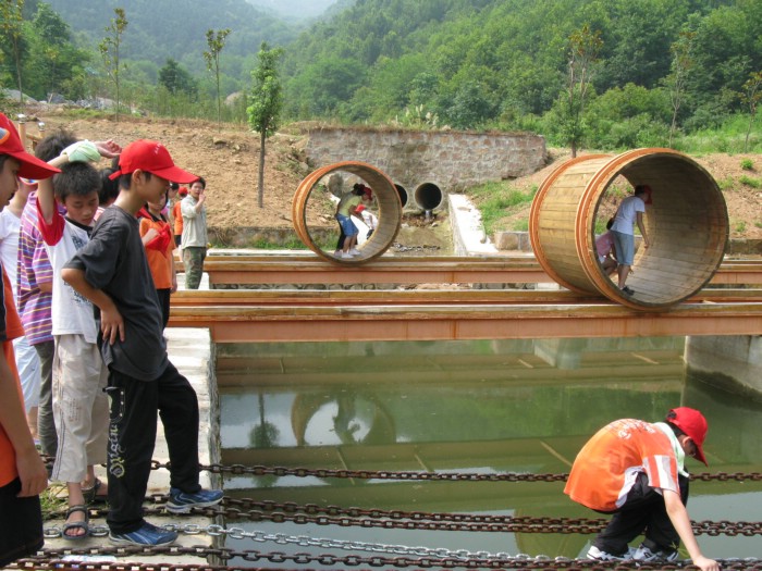 因天氣炎熱,我們一直擔(dān)心營員中暑,但很幸運,沒有一位營員出現(xiàn)這種情況。我們對營員的要求是“不輕易放棄,不盲目堅持”,每位營員都必須根據(jù)自身身體素質(zhì)情況決定自己的行程遠(yuǎn)近。兩天中,共有7位營員未能完全走完行程,到了半山腰就沒有繼續(xù)前進(jìn)了。學(xué)校專門安排教師陪同,不允許他們私自行動,以免發(fā)生意外。這兩天,通過營員們的表現(xiàn),可以看出,第一,女生比男生總體表現(xiàn)要好,7位未能爬上山的營員中6位是男生;第二,有些營員本身身體素質(zhì)不是很好,但通過夏令營開營以來的早上跑步和下午課外活動課的訓(xùn)練,他們的身體素質(zhì)明顯改善,我們事前擔(dān)心的一些可能不能完成任務(wù)的營員最后表現(xiàn)都非常好;第三,有不少營員能超出預(yù)料地完成各項體能拓展運動任務(wù),表現(xiàn)出色。