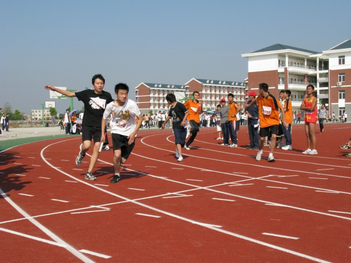 開幕式上,校旗隊(duì)、氣球隊(duì)、彩旗隊(duì)將整個(gè)操場裝點(diǎn)一新,統(tǒng)一著裝的裁判員和運(yùn)動員用激情拉開了安外東區(qū)首屆田徑運(yùn)動會的序幕。在接下來的兩天的緊張賽程中,運(yùn)動員們努力拼搏,用汗水筑就了自己永不言敗的夢想;裁判員們耐心細(xì)致,公平公正地記錄著運(yùn)動的輝煌。本屆運(yùn)動會上,最讓人難忘的莫過于高中男子三千米長跑,運(yùn)動員們不在乎自己的疲倦,不在乎汗水和淚水,在長長的跑道上留下了深深的足跡和堅(jiān)定的信念。