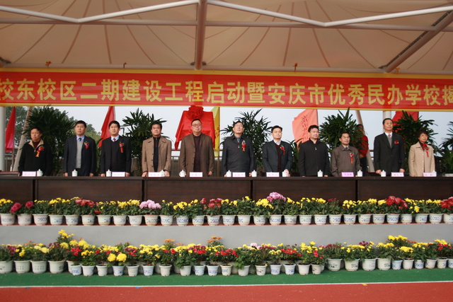 11月18日上午,安慶市外國語學校東校區(qū)二期工程建設啟動暨晉升優(yōu)秀民辦學校等級儀式隆重舉行。市人大常委會副主任孫嘉達,市政府副市長方祖中,市政協(xié)副主席張桂生,市政府副秘書長葉慶,市教育局局長江興代、工委副書記張澤水、副局長吳功華、副調(diào)研員鄧學群及有關部門、學校負責人出席了儀式。