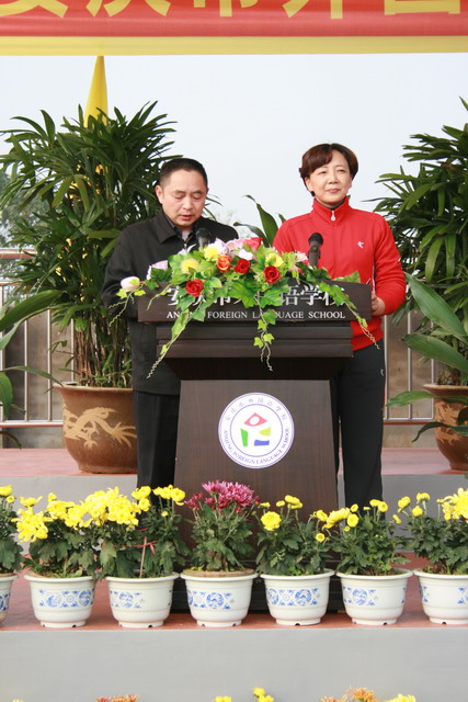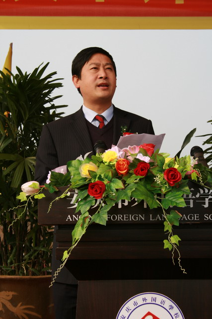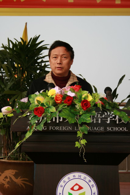 江興代發(fā)表熱情洋溢的講話,他說,安慶外國語學校東校區(qū)二期工程建設正式啟動和辦學水平晉升優(yōu)秀等級,是外國語學校發(fā)展史的一件喜事,盛事,也是我市民辦教育發(fā)展的一件大事。外國語學校以“厚基礎、強外語”為辦學宗旨,辛勤耕耘,頑強拼搏,嚴謹治學,奮發(fā)有為,形成了鮮明的辦學特色,取得了令人矚目的成績,呈現(xiàn)出快速發(fā)展的良好態(tài)勢。江局長要求,外國語學校要把握機遇,將東區(qū)二期建設成精品工程、惠民工程,盡快將學校做大、做優(yōu)、做強,使之成為省內(nèi)知名,國內(nèi)一流的民辦學校;要進一步解放思想,銳意創(chuàng)新,堅持依法辦學,強化市場意識,樹立經(jīng)營理念,努力地探索適應時代要求和自身發(fā)展規(guī)律的教育新模式,勇于擔當起引領我市民辦教育改革與發(fā)展的重任;要進一步更新教育理念,加強師資隊伍建設,深化教育教學改革,強化辦學特色,堅持文化立校、特色強校、科研興校,大力提升教育的內(nèi)涵和質(zhì)量,辦人民滿意教育,為全市教育事業(yè)的發(fā)展作出新的更大的貢獻。