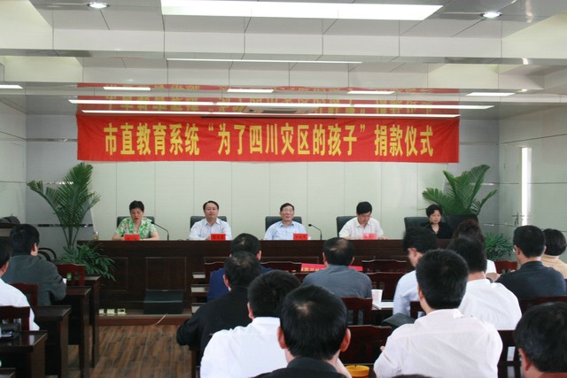 市教育局舉行市直教育系統(tǒng)“為了四川災(zāi)區(qū)的孩子”捐款儀式