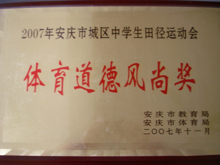2007年安慶市城區(qū)中學(xué)生田徑運(yùn)動(dòng)會(huì)體育道德風(fēng)尚獎(jiǎng)