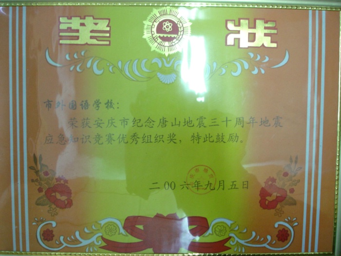 安慶市紀(jì)念唐山地震三十周年地震應(yīng)急知識競賽優(yōu)秀組織獎