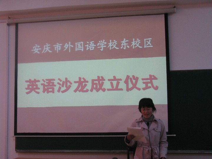 為了進(jìn)一步體現(xiàn)安外的外語(yǔ)教學(xué)特色,培養(yǎng)學(xué)生學(xué)英語(yǔ)、用英語(yǔ)的興趣,2009年3月17日清晨,安慶市外國(guó)語(yǔ)學(xué)校英語(yǔ)沙龍正式成立。成立儀式上,我們有幸邀請(qǐng)到了黃文莉校長(zhǎng),程金柳校長(zhǎng)蒞臨現(xiàn)場(chǎng)。同時(shí),張莉老師精彩的發(fā)言博得了小會(huì)員們陣陣的掌聲。同學(xué)們情緒高漲,現(xiàn)場(chǎng)氣氛熱烈。會(huì)后,小會(huì)員們還在老師的帶領(lǐng)下參觀了英語(yǔ)沙龍教室??粗懊鲙變舻慕淌?,嶄新的英語(yǔ)雜志以及多媒體設(shè)施,小會(huì)員們掩飾不住內(nèi)心的激動(dòng)和期待,紛紛表示要像黃校長(zhǎng)說(shuō)的那樣:“Study in English, speak in English, and even dream in English.”