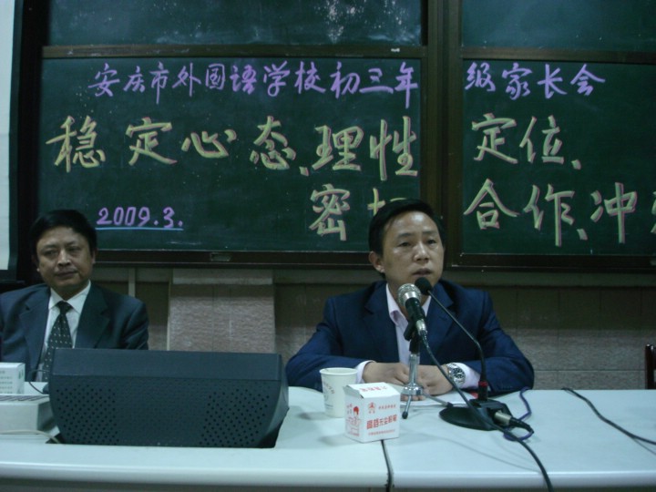 09屆11個畢業(yè)班的500余名家長相繼來到各班教室參加會議。家長們首先觀看了教學部凌謙主任關于初三年級工作部署,明確教育教學的階段性任務的講話視頻。我校許緒常校長針對“穩(wěn)定心態(tài),理性定位,密切合作,沖刺中考”的話題與家長進行了交流。視頻會后,由各班班主任及任課教師分別總結這一段時間以來班級、學科情況和學生在校表現(xiàn),并對后期復習工作做了介紹,同時提出了總體要求。部分班主任還將家長會的發(fā)言要點用多媒體課件的形式呈獻給家長,使家長能夠更直觀,更詳細的了解學校管理的方方面面。會后,家長針對自己孩子的特點與各科老師進行了進一步交流。