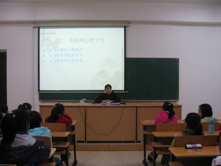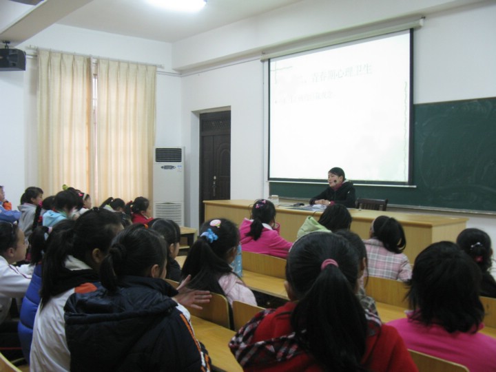 講座的主要內(nèi)容分為兩個部分:青春期衛(wèi)生保健和青春期心理健康。講座中,老師清晰、生動地告訴孩子們在日常生活中應(yīng)注意的諸多問題??粗⒆觽儑烂C而認真的表情,我們相信,這短短的45分鐘,對于她們來說,應(yīng)該是青春期乃至整個人生道路中一個嶄新而又健康的開始?!扒啻菏且皇赘琛?,只有健康,才能讓青春之歌更加嘹亮。
