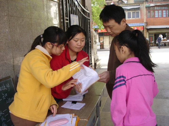 活動當天,學校彩旗飄揚,人聲鼎沸,前來我校咨詢的家長和學生絡繹不絕,川流不息。我校教職員工也以飽滿的熱情,親切的態(tài)度喜迎尊貴的客人們。教室里,多媒體課件展示了我校辦學五年來取得的各方面成績和學校教師的風采;負責接待的老師們認真細致的解答著家長們提出的問題,幫助家長了解我校今年的辦學成果、招生政策、師資力量、德育教育等方面的內(nèi)容。在全體教職員工的共同努力下,我校招生咨詢?nèi)栈顒荧@得了圓滿成功。