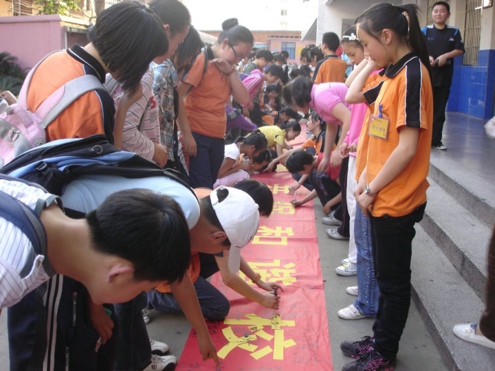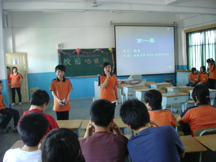 2009年5月4日到5月8日,我校第一屆心理健康活動(dòng)周在全校范圍內(nèi)如火如荼的展開。本屆活動(dòng)周的主題是“關(guān)注心理健康,共促和諧校園”。圍繞這一主題,校陽(yáng)光俱樂(lè)部協(xié)同政治組的老師們組織了一系列活動(dòng),分別有心理健康宣傳展板、學(xué)生心理手抄報(bào)評(píng)比、陽(yáng)光俱樂(lè)部新一屆委員會(huì)成立、校園心理劇表演和千人簽名活動(dòng)?;顒?dòng)內(nèi)容豐富多彩,形式多樣,從不同角度切入學(xué)生的心理。