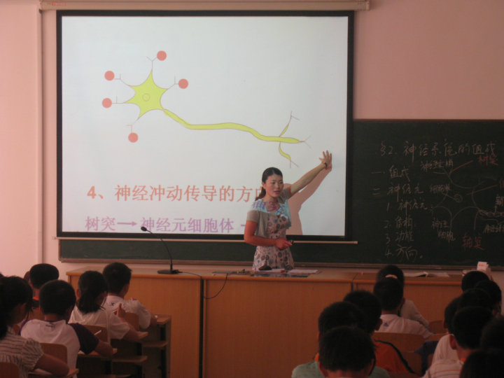 根據(jù)本次活動的安排,老師們先后聽取了我校李學鳳老師和四中張琦老師的兩節(jié)教學觀摩課。李學鳳教師開設(shè)的教學觀摩課是《神經(jīng)系統(tǒng)的組成》,這節(jié)課的內(nèi)容理論性較強,師生的互動是個難題。在老師們的翹首期盼中,李老師開始了這節(jié)課的教學。她先是啟發(fā)學生列舉發(fā)生在身邊的實例,從生活中的現(xiàn)象說起,娓娓道來自然導出課題。整節(jié)課的教學過程當中,教者循循善誘,在師生互動中深入淺出地完成了課堂教學內(nèi)容。隨后,老師們又聆聽了四中張老師的觀摩課《神經(jīng)調(diào)節(jié)的基本方式》。