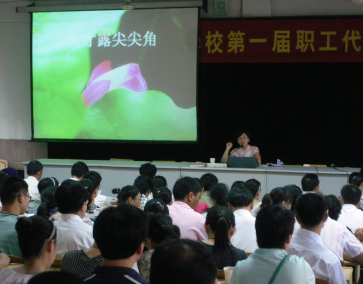 會上,黃文莉校長作《2009—2010學(xué)年度學(xué)校工作報告》。黃校長對安外幾年來的辦學(xué)歷程進(jìn)行了階段性的梳理,肯定了全體員工為學(xué)校做出的卓越貢獻(xiàn),同時要求全體教職員工同心同德、同心協(xié)力、同舟共濟(jì),為學(xué)生提供最為優(yōu)質(zhì)的服務(wù),共創(chuàng)安外“映日荷花別樣紅”的明天!