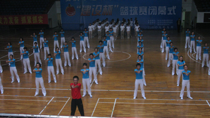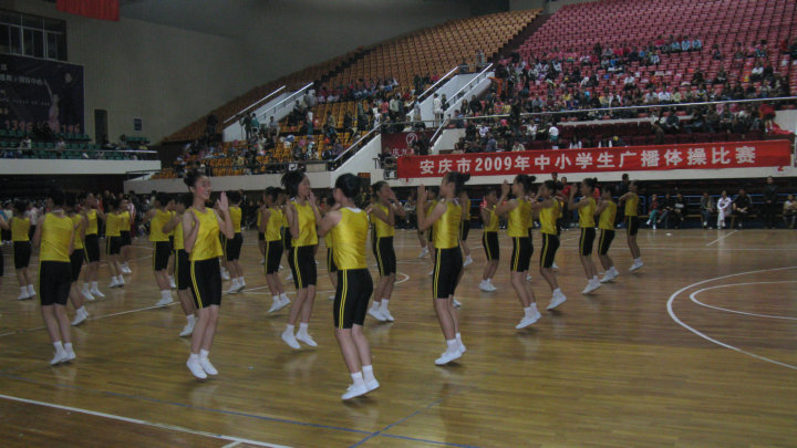 10月11日,安慶市九牧體育館內(nèi)外彩旗招展,人聲鼎沸,由市教育局主辦的安慶市2009年中小學(xué)生廣播操比賽在這里隆重舉行。
