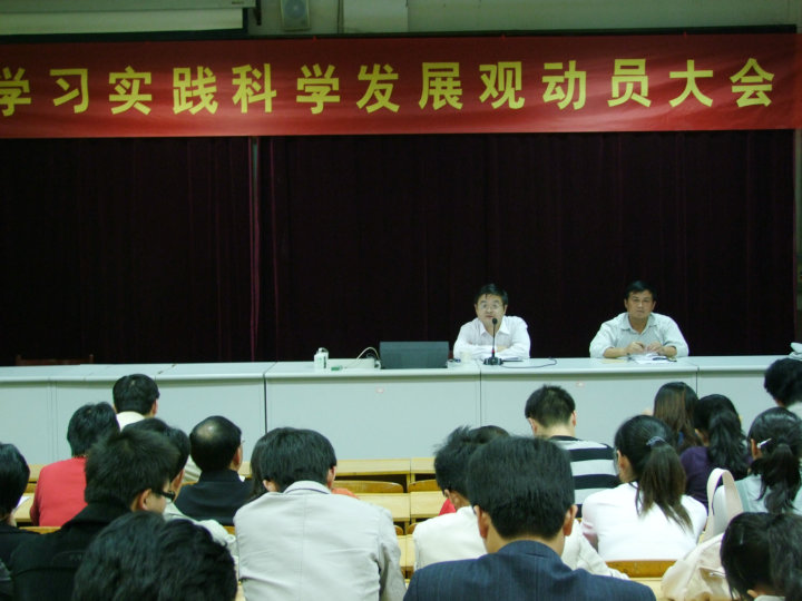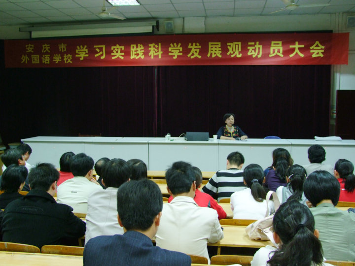 十月十五日晚上七點(diǎn)半,安慶市外國語學(xué)校在西校區(qū)報告廳召開由學(xué)校行政干部、全體黨員及特邀群眾代表參加的學(xué)習(xí)科學(xué)發(fā)展觀動員大會。按照安慶市委的統(tǒng)一部署,我校作為第三批學(xué)習(xí)實踐科學(xué)發(fā)展觀的單位,得到了市民政局的大力支持和特別重視,并派專人蒞臨指導(dǎo)工作。