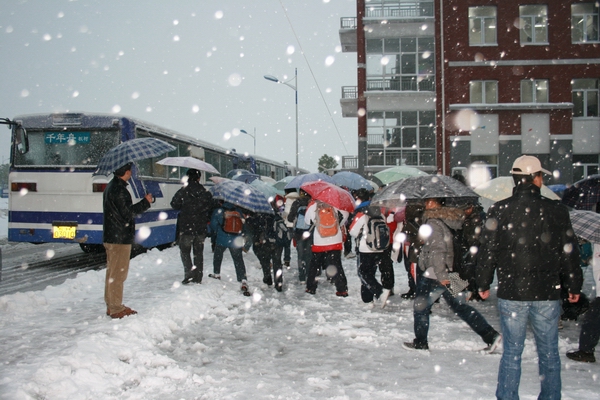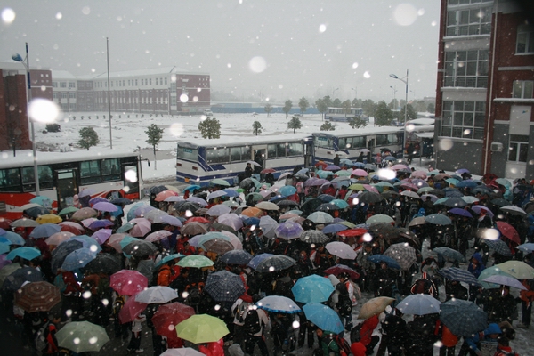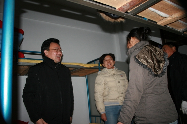 突如其來的降溫和雨雪天氣,讓市領(lǐng)導(dǎo)十分牽掛一線師生的生活、工作和學(xué)習(xí)狀況。2009年11月16日下午,安慶市政府黃杰副市長(zhǎng)、市教育局陳云副局長(zhǎng)和安慶市外國(guó)語(yǔ)學(xué)校孫英副董事長(zhǎng)等一行人冒著風(fēng)雪驅(qū)車來到安慶市外國(guó)語(yǔ)學(xué)校東校區(qū)慰問全體師生。在校領(lǐng)導(dǎo)的陪同下深入食堂,宿舍等一些部門,進(jìn)行慰問、檢查和指導(dǎo),對(duì)學(xué)校為這場(chǎng)風(fēng)雪所作出的應(yīng)急措施給予了充分的肯定,并對(duì)學(xué)校面臨的困難立刻幫助協(xié)調(diào)解決。