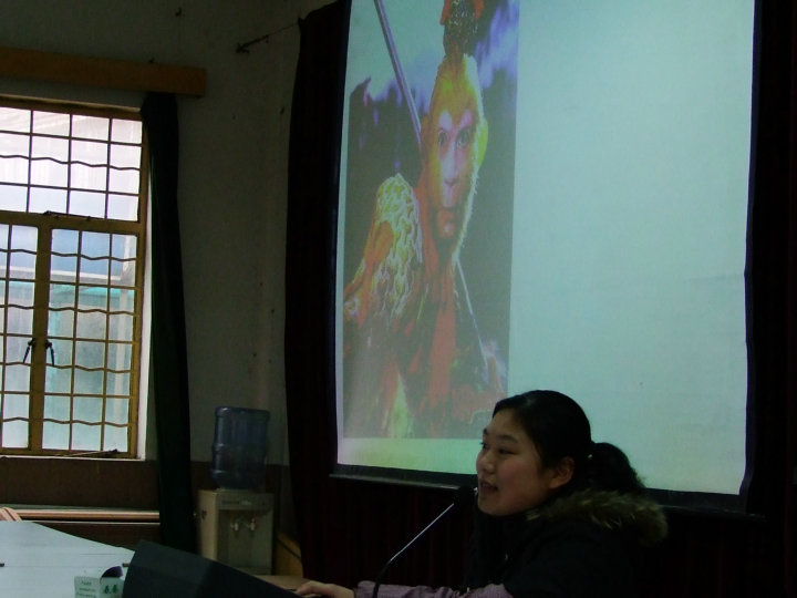 老師首先在大屏幕上向同學(xué)們展示了許多婦孺皆知的經(jīng)典人物形象,并要求同學(xué)們用一到兩個(gè)詞來(lái)形容人物的特點(diǎn)。屏幕上先后出現(xiàn)了孫悟空、唐僧等生動(dòng)的形象。同學(xué)們都非常活躍,爭(zhēng)相舉手發(fā)表自己的意見(jiàn)。當(dāng)屏幕上出現(xiàn)豬八戒時(shí),同學(xué)們都笑了起來(lái),有人說(shuō)他“肥頭大耳”,有人說(shuō)他“憨態(tài)可掬”,此時(shí),同學(xué)們已經(jīng)完全融入了老師所帶領(lǐng)的世界中。