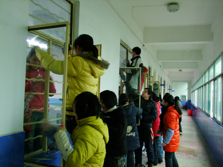 1月21日下午第三堂團隊活動課,團委組織初二全體團員進行義務(wù)勞動,擦拭化學(xué)實驗室、生物實驗室和物理實驗室的窗戶。雖然天氣寒冷,但同學(xué)們在德育部蘆主任和幾名團委委員的帶領(lǐng)下把玻璃擦得干干凈凈,充分體現(xiàn)了優(yōu)秀共青團員的精神面貌,并為美化校園環(huán)境做出了自己的貢獻。