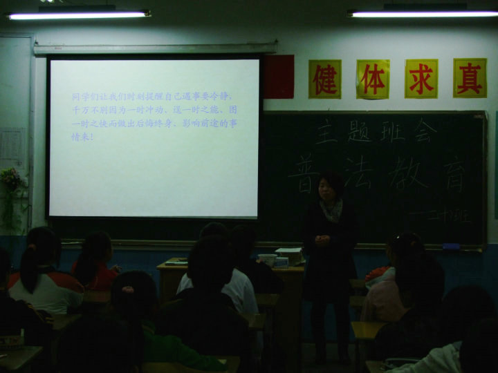為了配合市“五五普法教育”,2010年3月22日,周一。我校借每周一下午的班會(huì)課,拉開了新一輪校園安全宣傳月的帷幕。各班均針對(duì)“中學(xué)生安全”這樣一個(gè)主題舉行了主題班會(huì),學(xué)校對(duì)于此次宣傳教育活動(dòng)十分重視,由德育部蘆丹主任帶隊(duì)親自下到各班級(jí)臨堂聽取安全教育課程并制作了統(tǒng)一的課件供各班老師使用。老師們主要圍繞了“預(yù)防未成年人犯罪”、“未成年人的法律保護(hù)”這樣兩個(gè)主題,結(jié)合了大量實(shí)例,為同學(xué)們宣講了《中華人民共和國(guó)預(yù)防未成年人犯罪法》和《中華人民共和國(guó)未成年人保護(hù)法》的相關(guān)法條,既強(qiáng)調(diào)了廣大中學(xué)生所應(yīng)負(fù)擔(dān)的法律責(zé)任同時(shí)也突出了他們所擁有的權(quán)利。此次的主題教育活動(dòng),深入了廣大學(xué)生的內(nèi)心,讓他們意識(shí)到了自己作為弱勢(shì)群體可受到法律保護(hù),同樣也需要承擔(dān)相應(yīng)的法律責(zé)任,這對(duì)于他們今后的成長(zhǎng)將起到很好的引導(dǎo)作用。