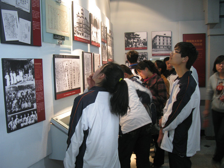 紀(jì)念儀式結(jié)束后,學(xué)生們?nèi)チ陥@繼續(xù)參觀。在綠意簇?fù)碇氖峡讨壬氖论E,一件件,都震撼著學(xué)生的心靈。紀(jì)念館內(nèi)收藏的內(nèi)容更加豐富了。在一張張發(fā)黃的黑白照片中,都是先生偉大精神的體現(xiàn)。