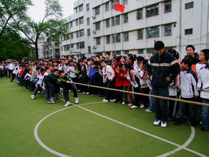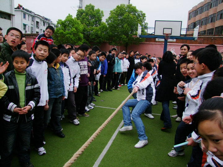 為了響應(yīng)局團委的號召,為了豐富學(xué)生的課外生活,4月12日、13日安慶市外國語學(xué)校(西區(qū))初一年級組織了拔河比賽。比賽采用淘汰賽的方式,分為兩場,共11個班級參加了比賽。比賽時,操場上人山人海,選手們奮力拼搏,用盡自己全身的力氣,努力把對手朝自己身邊拉,旁邊加油的同學(xué)似乎更緊張,拼命地喊“加油!”大家的目光都注視在了繩子中間的記號上,人們的心也隨著記號的移動而跳動。最終,經(jīng)過兩天緊張的角逐,初一(1)班、初一(4)班、初一(3)班奪得了本次比賽的一、二、三等獎。通過這次比賽,學(xué)生們體會到了活動的樂趣,同時也增強了各班級的凝聚力,意義重大。