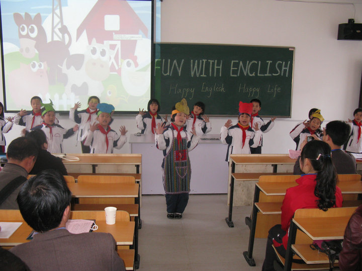 2010年4月23日是我校教學(xué)開放日。下午第三節(jié)課,小學(xué)部在合班教室舉行了題為“Fun with English——Happy English Happy Life”(快樂英語,快樂生活)的英語才藝展演活動。本次展演共有十個節(jié)目,形式多種多樣,有兒歌連唱,表演唱,獨唱,課本劇表演等等。每一位小選手都使出渾身解數(shù),盡展他們的風(fēng)采。來自各校的老師觀看了表演,學(xué)生的精彩演出得到了老師們的一致贊許。此次活動既豐富了學(xué)生們的課余生活,又提高了學(xué)生英語口語能力,同時也增強(qiáng)了大家學(xué)英語,用英語的熱情。