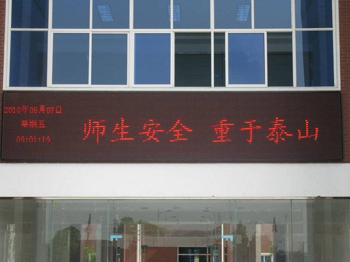學(xué)校行政樓LED屏顯示著“師生安全 重于泰山”