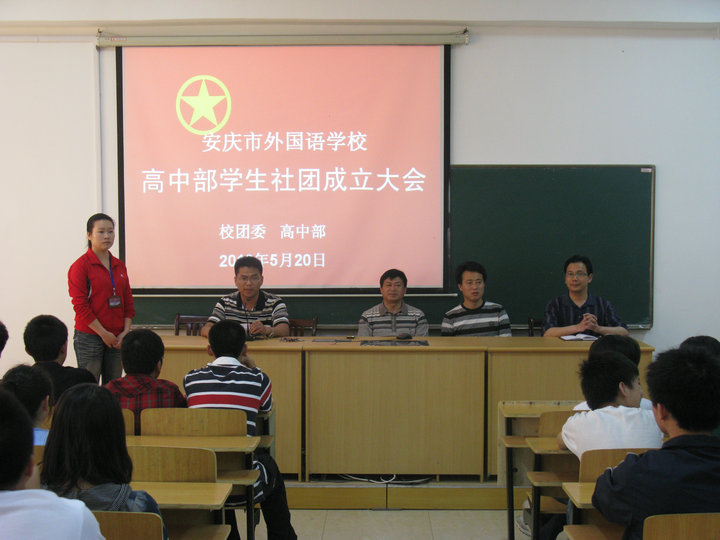 5月20日上午,由校團(tuán)委、校高中部主辦的我校高中部學(xué)生社團(tuán)成立大會在合班教室隆重舉行。程金柳校長、劉兵書記、唐文生主任和社團(tuán)的四位指導(dǎo)教師及高一、高二兩個(gè)年級的社團(tuán)成員參加了大會。
