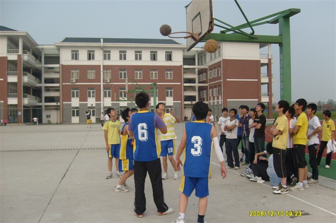 2010年6月4日,為了豐富同學們的的課余生活,我校舉行了初二年級籃球賽,經(jīng)過緊張激烈的單循環(huán)淘汰賽,初二(1)班、初二(2)班、初二(4)班晉級決賽。6月12日下午第四節(jié)課,初二(1)和初二(4)班進行冠亞軍決賽,場面更是驚心動魄、精彩紛呈。男生們在場上奮力拼搏,女生們在場下加油吶喊。一時間,同學們的情緒感染了整個籃球場,籃球場沸騰了!經(jīng)過激烈角逐,初二(1)班同學配合默契,反應(yīng)靈敏,傳球快、投球準,打出了風格,打出了水平,最后以絕對的優(yōu)勢力拔頭籌,獲得了這場比賽的冠軍,初二(4)獲得亞軍,初二(2)班獲得季軍。
