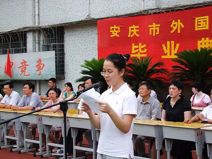 同學們,臨別之際,讓我們立下誓言:今天,我們以作為安外的畢業(yè)生為榮;明天,安外將會以我們——祖國的棟梁,為榮!