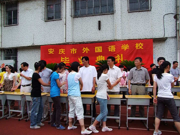 2010年6月17日上午8:00,安慶市外國語學校西校區(qū)2010屆初中畢業(yè)典禮在后操場隆重舉行。全體校領導和初三全體師生參加了此次典禮,典禮由江楠老師主持。