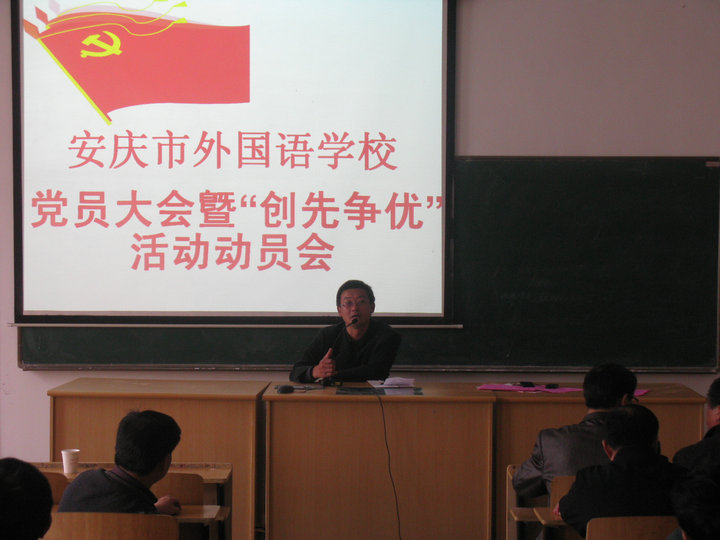目前,創(chuàng)先爭(zhēng)優(yōu)活動(dòng)正在全黨全面展開,這是我黨繼學(xué)習(xí)實(shí)踐科學(xué)發(fā)展觀活動(dòng)之后的又一件大事。根據(jù)中央、省市精神和上級(jí)教育黨委要求,從學(xué)校特點(diǎn)和實(shí)際出發(fā),我校將深入開展以“打造一流領(lǐng)導(dǎo)班子,培養(yǎng)一流師資隊(duì)伍,創(chuàng)造一流辦學(xué)業(yè)績(jī)”為目標(biāo)的創(chuàng)先爭(zhēng)優(yōu)活動(dòng)。會(huì)上,校黨總支書記陳一平同志代表學(xué)校黨總支對(duì)我校深入開展這一活動(dòng)進(jìn)行動(dòng)員。
