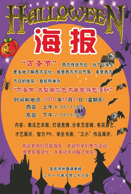 安慶市外國(guó)語(yǔ)學(xué)校東校區(qū)第六屆萬(wàn)圣節(jié)活動(dòng)海報(bào)