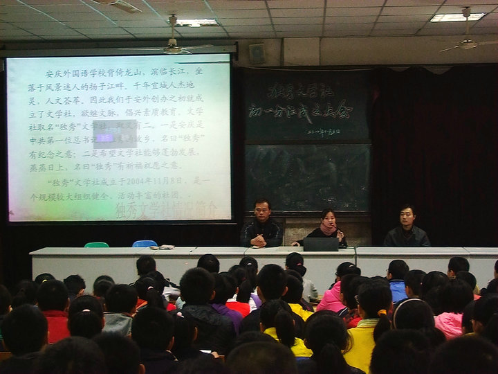 安慶市外國語學校一直十分重視學生的素質(zhì)培養(yǎng),而中學生社團是中學校園文化的載體,是校園生機、活力和魅力的重要體現(xiàn),是培養(yǎng)中學生綜合素質(zhì)的重要載體,也可以為廣大中學生提供施展才華,增強思想道德修養(yǎng)的重要舞臺。通過這些學生社團活動的開展,學生的參與,從而使學生在活動中逐漸確立正確的價值標準、行為準則、道德觀念,樹立正確的世界觀、人生觀、價值觀,形成良好的道德情操。