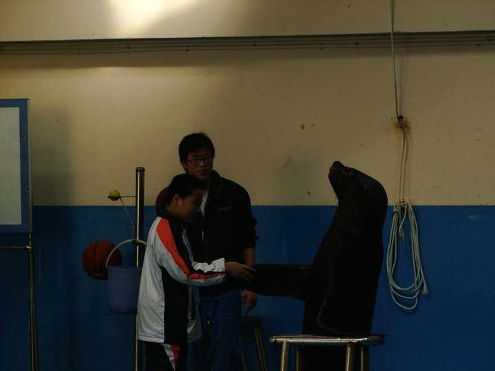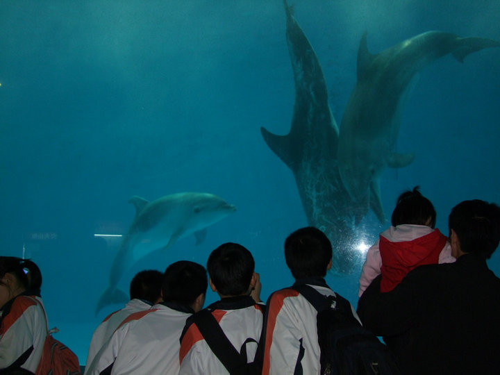 隨后我們驅(qū)車20分鐘,來到了合肥海洋世界,這里的300多種魚類,數(shù)量達(dá)到了數(shù)萬(wàn)條,同學(xué)們仿佛都置身于海洋中。海洋世界向我們不同水域的不同物種之間的奇妙聯(lián)系,展示生命的奇妙和諧的生存方式。我們經(jīng)過溪流、湖泊、雨林、江河直到廣闊的海洋,近距離觀賞到各種有代表性的動(dòng)物以及它們的棲息環(huán)境,大家深深體會(huì)到大自然生命的和諧。同學(xué)們除了觀賞到很多珍惜魚類外, 還欣賞到了海獅表演,我校學(xué)生還上臺(tái)與海獅零距離接觸。