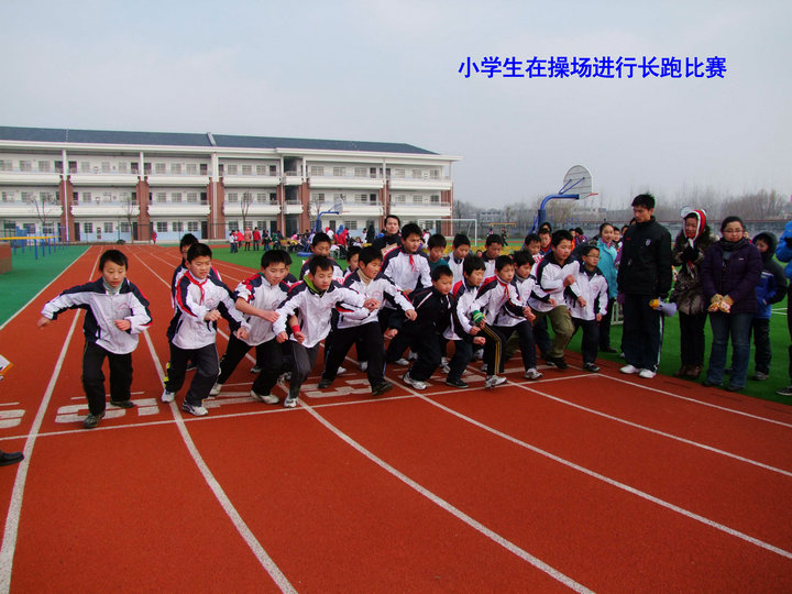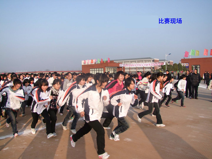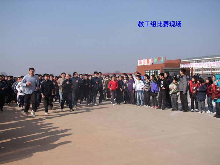 我校小學(xué)生在校田徑場(chǎng)進(jìn)行長(zhǎng)跑比賽。初中部、高中部和教職工共分初中男子組、初中女子組、高中男子組、高中女子組和教工組共五組在校外進(jìn)行長(zhǎng)跑比賽。27日上午8:00,比賽如期進(jìn)行。由于經(jīng)過(guò)精心充分的準(zhǔn)備,長(zhǎng)跑比賽活動(dòng)有條不紊,取得了圓滿成功。