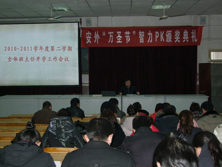 金虎辭舊歲,玉兔迎新春。2月19日下午,安慶市外國(guó)語(yǔ)學(xué)校在階梯教室召開(kāi)全體班主任工作會(huì)議。會(huì)議由德育部蘆丹主任主持,出席會(huì)議的有許緒常校長(zhǎng)、各年級(jí)組組長(zhǎng)及全體班主任等相關(guān)成員。