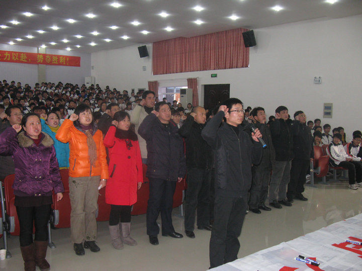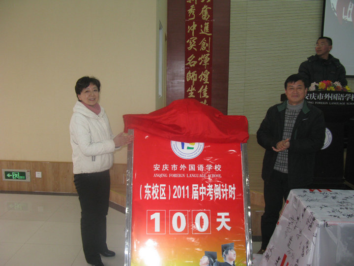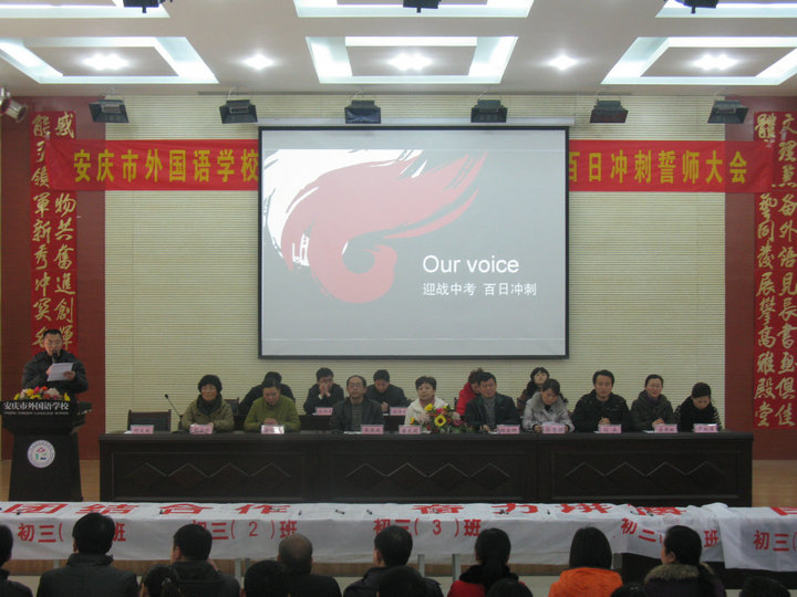 2011年3月7日下午,安外全體校領(lǐng)導(dǎo)、各班家長(zhǎng)代表、初三全體師生在學(xué)校大報(bào)告廳隆重舉行迎戰(zhàn)中考百日沖刺誓師大會(huì)。