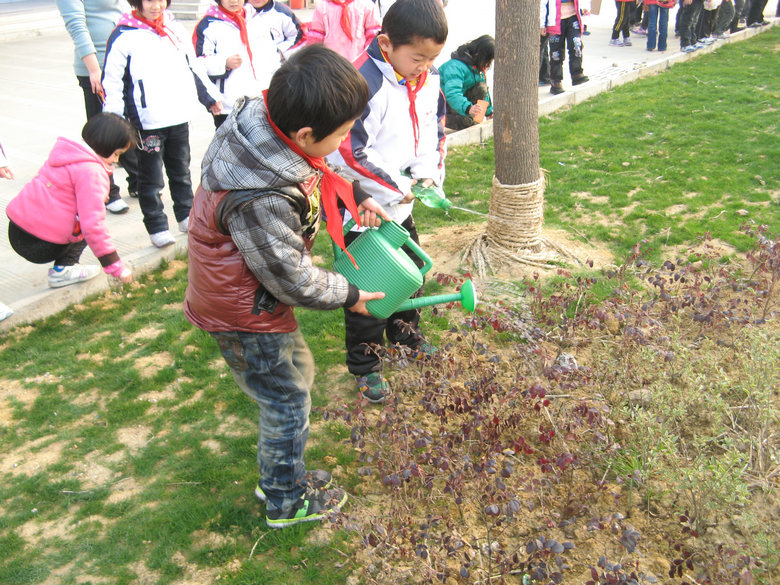今天,同學(xué)們在校園里播種下綠色的希望;明天,通過自身的努力,同學(xué)們也會和小樹苗一起茁壯成長,為祖國增添絢麗的色彩。
