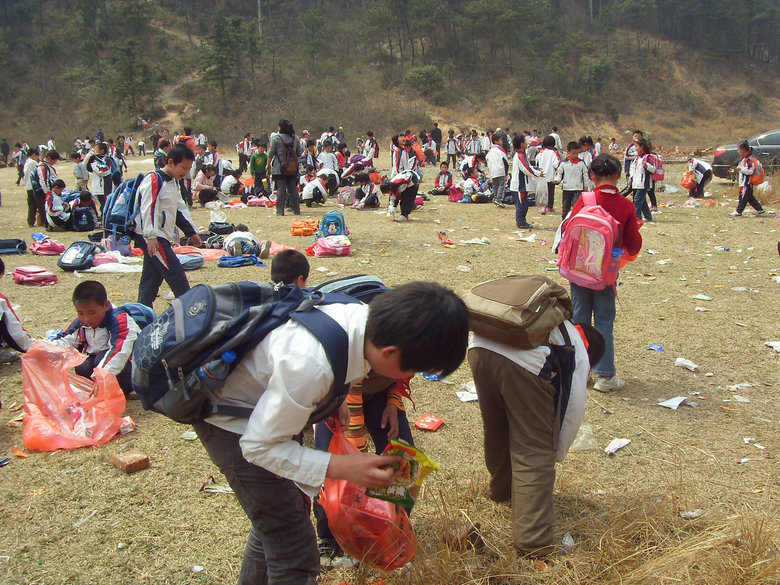 同學(xué)在游玩的同時(shí),非常注意保護(hù)環(huán)境,將垃圾袋裝化,并主動(dòng)將沿路的垃圾放進(jìn)了事先準(zhǔn)備好的塑料袋里。