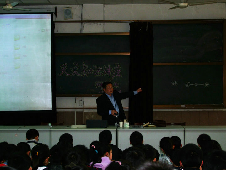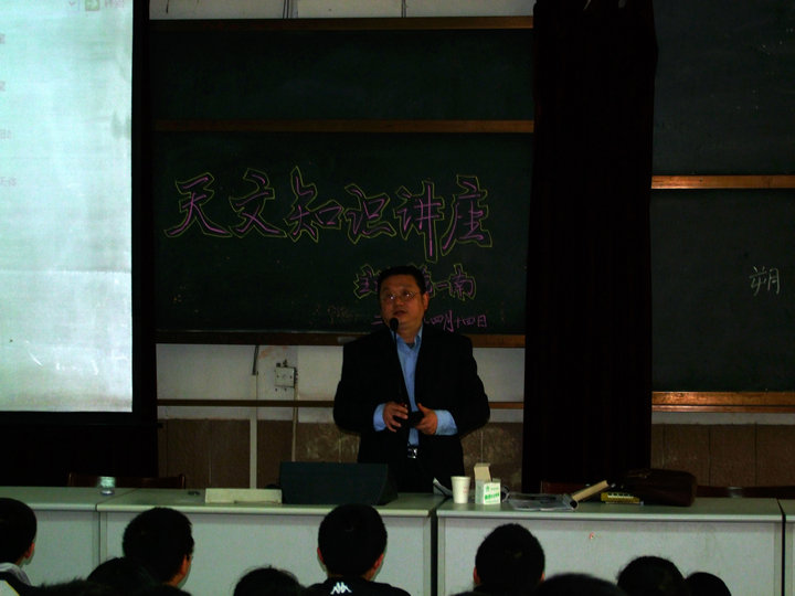2011年4月14日陽光明媚的下午,安慶市科技館副館長施一南先生受邀來我校給科技俱樂部全體會員做天文知識專場講座。
