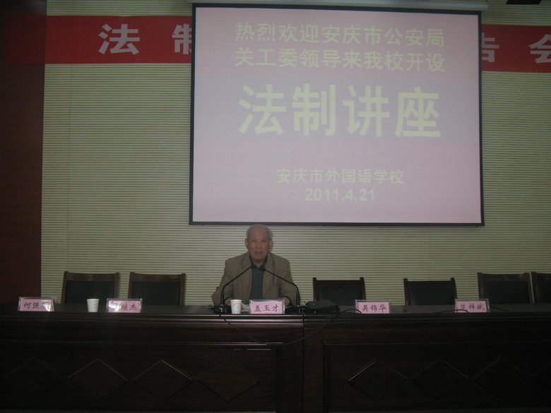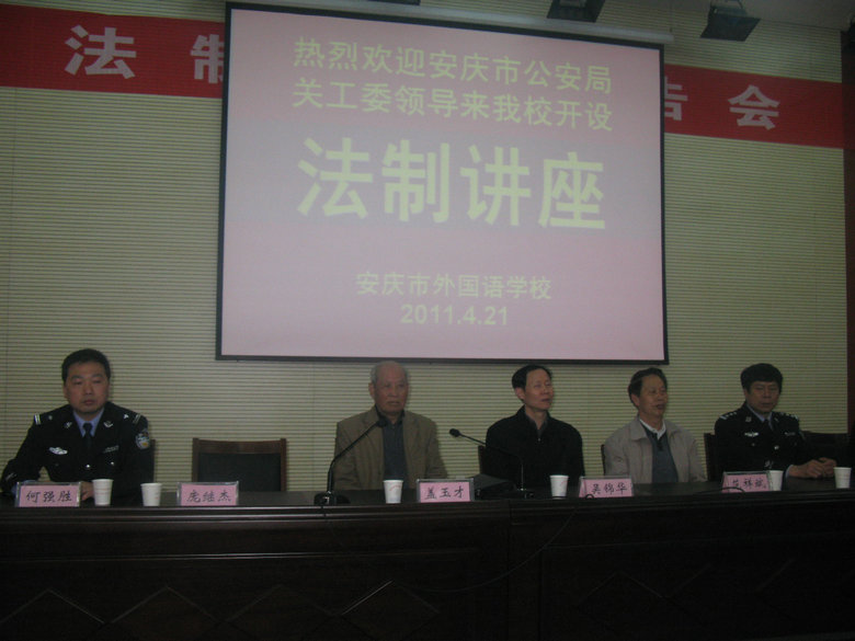 今年是中國共產(chǎn)黨建黨90周年,為進(jìn)一步培養(yǎng)我校學(xué)生對黨和社會主義祖國的熱愛之情,增強(qiáng)學(xué)生遵紀(jì)守法的自覺性,4月21日下午,我校邀請安慶市公安局關(guān)工委蓋玉才副主任來到我校,為我校高一年級全體同學(xué)開設(shè)了《讀書不忘報黨恩》專題講座。