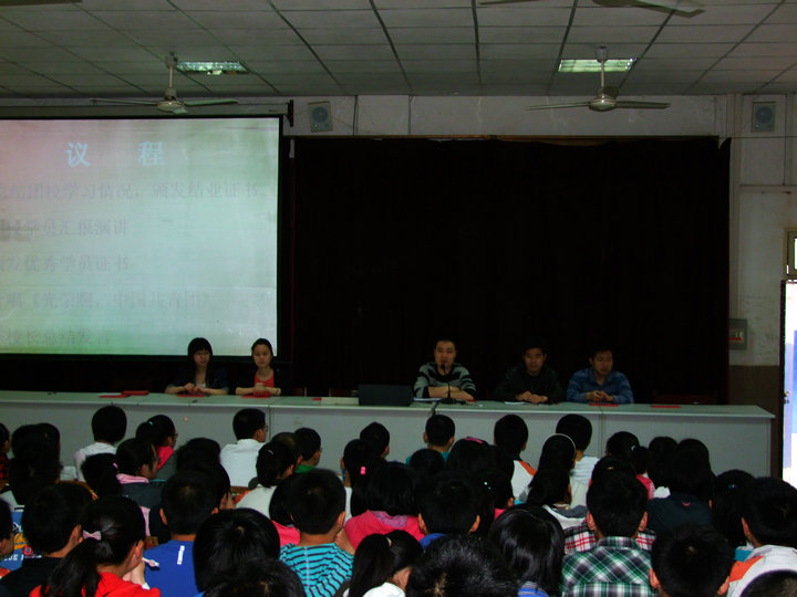 2011年4月27日早讀課,安慶市外國(guó)語(yǔ)學(xué)校(西區(qū))第七期團(tuán)校結(jié)業(yè)典禮在一樓報(bào)告廳隆重舉行。出席本次結(jié)業(yè)典禮的有校黨總支書記陳一平、德育部主任蘆丹及團(tuán)委委員。