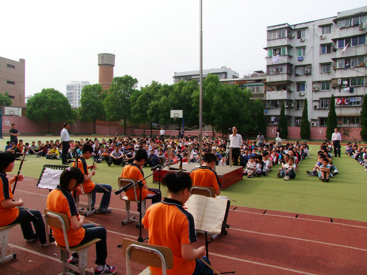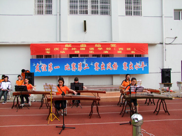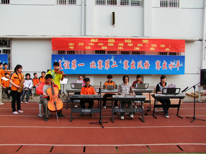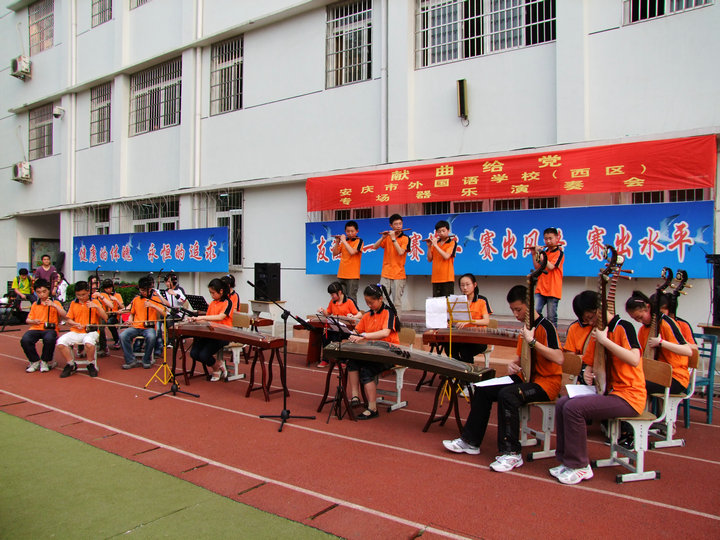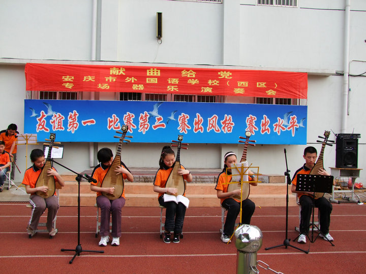 為了喜迎中國共產(chǎn)黨建黨90周年,5月12日下午課外活動(dòng)課,安慶市外國語學(xué)校民樂隊(duì)為初一師生呈現(xiàn)了一場(chǎng)民樂盛宴。
