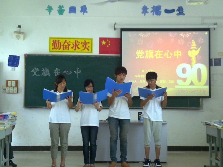 為隆重紀念黨的九十華誕,全面回顧黨的奮斗歷史,熱情謳歌黨的光輝業(yè)績,繼承和發(fā)揚黨的光榮傳統(tǒng)與優(yōu)良作風,進一步增強黨組織的凝聚力和戰(zhàn)斗力,進一步堅定廣大青年學生的理想信念,激發(fā)歷史責任感,2011年6月19日下午第三節(jié)課,高一(8)班舉辦了《黨旗在心中》的主題班會,班會邀請了高一、高二全體班主任老師前來觀摩。