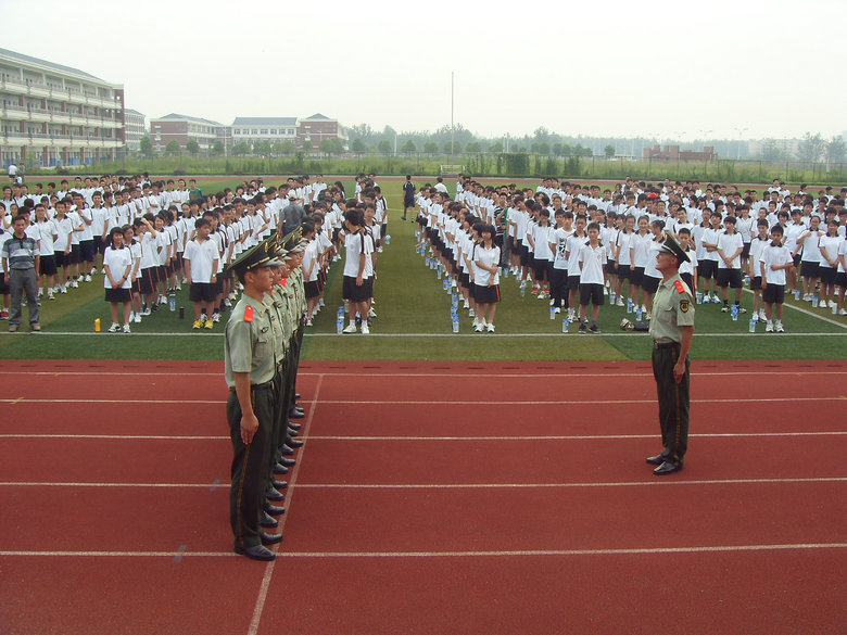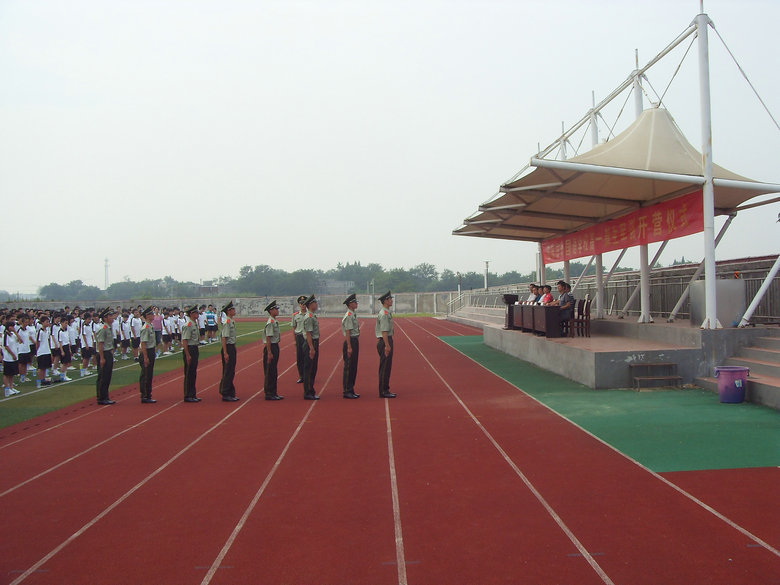 十年寒窗誠然刻苦,三載春華更需拼搏。2011年8月19日上午8點30分我校2011級高一新生軍訓開營儀式在校田徑場隆重舉行。參加本次開營儀式的有中國人民解放軍安慶武警支隊管仁和參謀,黃文莉校長、程金柳校長、張燕斌校長、校團委劉兵書記、高中部唐文生主任、徐海宏主任、各連教官、各班班主任老師和600余名2011級學生。