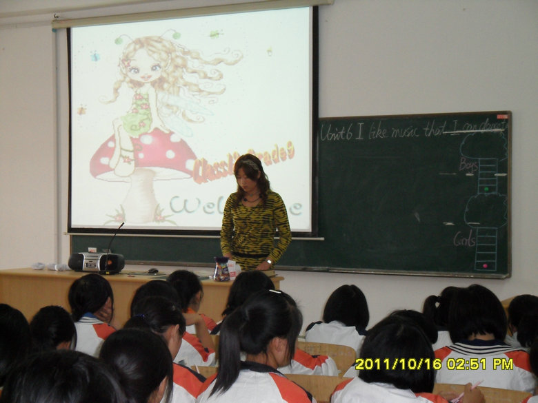 借著“推進英語教學改革”的秋風,2011年10月16日,作為安徽省乃至全國的外語教研示范學校,我校初中部和小學部為安慶師范學院國培班一行60多名骨干教師各上了一節(jié)英語示范課。初中部英語教研組張艷老師課前精心準備,課上精彩展示。張老師所上內(nèi)容為Go for it Unit6 I like the music that I can dance to. 張老師借助游戲寓教于樂,通過比賽充分互動。最后更是借題發(fā)揮充分進行了一番情感教育。精彩、實用、有效是前來觀摩的老師一致給出的評價。