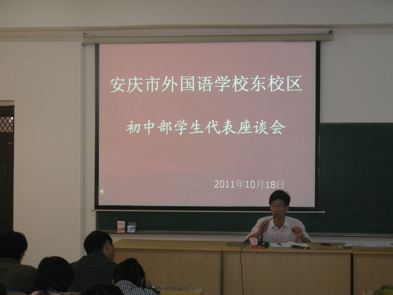 為了更好地了解學(xué)生,促進(jìn)班級(jí)管理向更深層次發(fā)展,構(gòu)建和諧穩(wěn)定的校園環(huán)境。10月18日上午,我校初中部2011—2012學(xué)年度第一學(xué)期學(xué)生代表座談會(huì)在中學(xué)部合班教室召開(kāi)。座談會(huì)共設(shè)四個(gè)環(huán)節(jié):首先學(xué)部針對(duì)目前中學(xué)生心理及學(xué)習(xí)情況設(shè)計(jì)了一份問(wèn)卷調(diào)查,其次,方孫勝老師就學(xué)生代表作用以及如何發(fā)揮學(xué)生代表作用做了詳細(xì)分析,第三環(huán)節(jié)由學(xué)生代表針對(duì)目前班級(jí)管理及學(xué)習(xí)生活中遇到的疑惑發(fā)表了自己的看法,最后,學(xué)部領(lǐng)導(dǎo)陳安琪主任就目前學(xué)生現(xiàn)狀提出了幾點(diǎn)要求,勉勵(lì)大家要明確責(zé)任,注重細(xì)節(jié),增強(qiáng)安全意識(shí),從自己做起,從現(xiàn)在做起,爭(zhēng)取在今后的學(xué)習(xí)生活中取得更好、更驕人的成績(jī)!