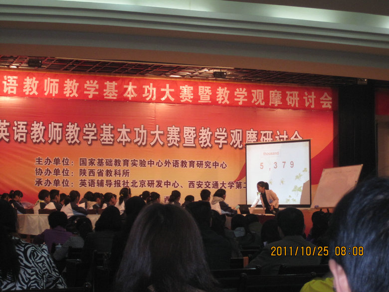 在學(xué)校的安排下,10月21至26日,我有幸參加了在西安舉辦的全國(guó)第五屆初中英語(yǔ)教學(xué)基本功大賽暨教學(xué)觀摩會(huì)。在觀摩會(huì)中,我深刻體會(huì)了來(lái)自全國(guó)各地的39名教師的教學(xué)風(fēng)采。他們精心的教學(xué)設(shè)計(jì),標(biāo)準(zhǔn)的英語(yǔ)發(fā)音,嫻熟的教學(xué)方法讓參會(huì)的1000多名聽(tīng)課教師贊不絕口。在兩天半的激烈比賽中,他們最終角逐了一,二等獎(jiǎng)。云南省教科所的李成教授對(duì)各位老師的教學(xué)點(diǎn)評(píng)更是錦上添花。他高度評(píng)價(jià)了參賽教師的教學(xué)水平,同時(shí)也客觀地指出了他們的不足,如部分教師沒(méi)有全面關(guān)注學(xué)生,沒(méi)有備好學(xué)生的英語(yǔ)水平,在課堂上通過(guò)物質(zhì)獎(jiǎng)勵(lì)造成對(duì)其他老師的不公平等。