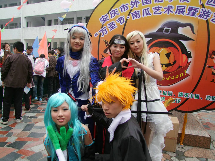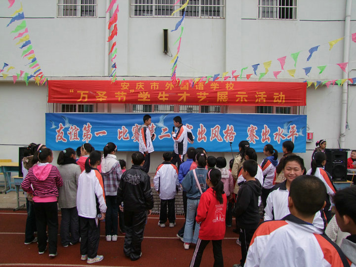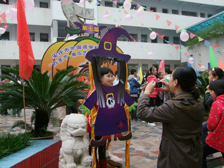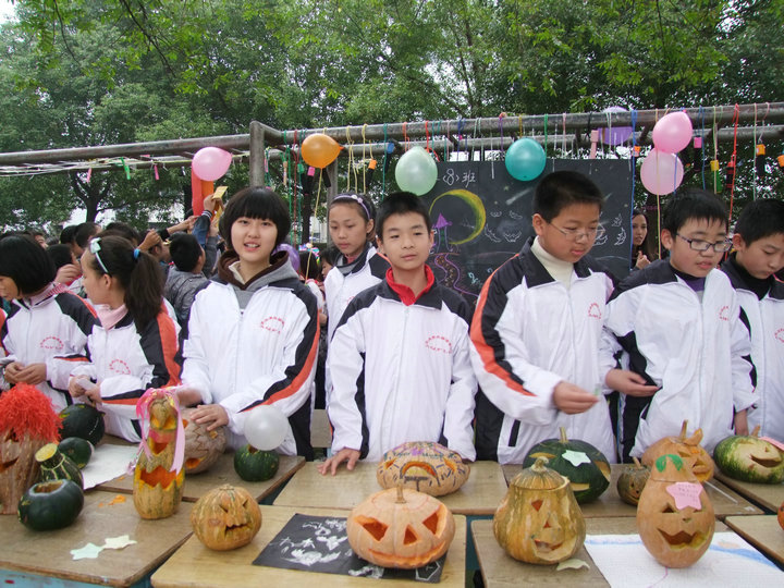 2011年10月30日,安慶市外國(guó)語(yǔ)學(xué)校在全體師生們熱切的期待中,迎來(lái)了校第七屆“萬(wàn)圣節(jié) 大型南瓜藝術(shù)展暨游藝活動(dòng)”。本次藝術(shù)節(jié)不僅保留了這幾年來(lái)傳統(tǒng)的南瓜展、才藝展演、英語(yǔ)角、有獎(jiǎng)游藝活動(dòng)等,更是將cosplay、智力PK與英語(yǔ)一條街(跳騷市場(chǎng))巧妙地融入這次活動(dòng)中,整個(gè)校園洋溢著神秘、歡樂(lè)的氣氛,真可謂異彩紛呈,精彩不斷。