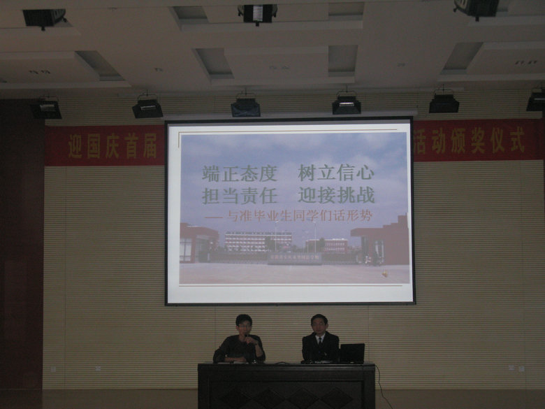 11月21日下午,我校初中部“2012屆畢業(yè)生思想動(dòng)員會(huì)”在校報(bào)告廳召開。會(huì)上特邀初中部王生祥主任就目前學(xué)生面臨的形勢(shì)、思想動(dòng)態(tài)及精神追求等方面做了詳細(xì)分析。王主任結(jié)合自身多年帶班經(jīng)驗(yàn),給畢業(yè)生提出了幾點(diǎn)要求:在思想上要 “端正態(tài)度,樹立信心,擔(dān)當(dāng)責(zé)任,迎接挑戰(zhàn)”;在目標(biāo)上要懂得:“求上則居中,求中則居下,求下則不入流”;在行為上要嚴(yán)格要求自己,告別陋習(xí)。最后,王主任對(duì)在期中考試中取得優(yōu)異成績的同學(xué)給予了鼓勵(lì),并號(hào)召大家向優(yōu)秀的榜樣學(xué)習(xí)!