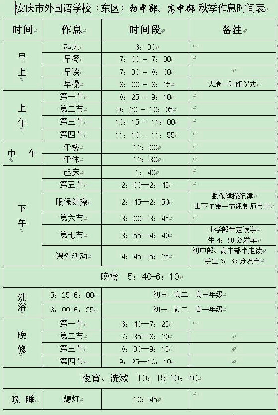 中學(xué)秋季作息時(shí)間表